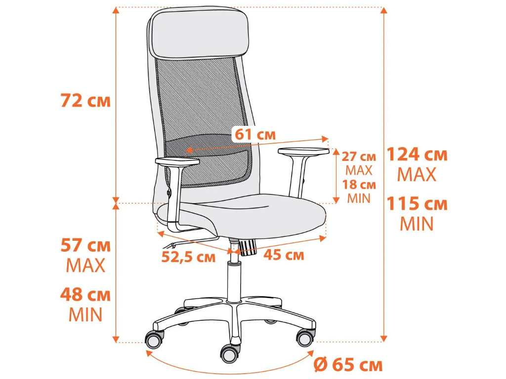 - Кресло оснащено газлифтом 3 класса с ходом 100 мм