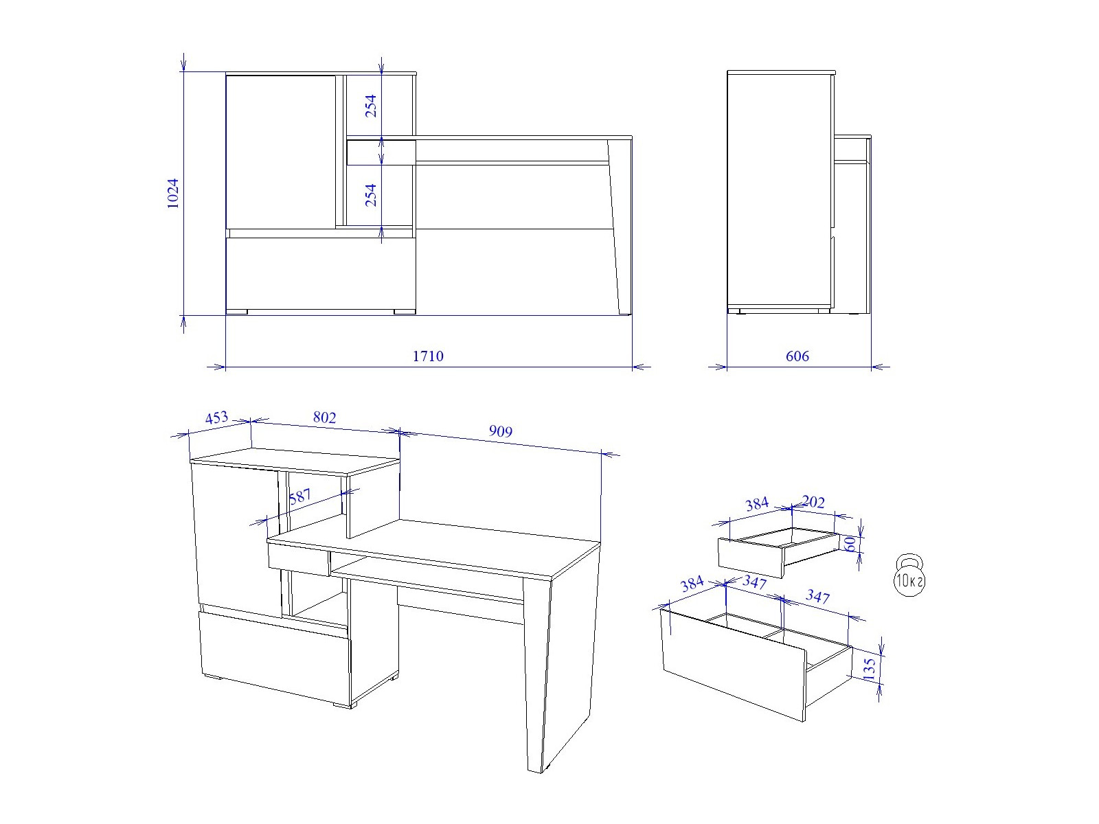 - Высота (мм) 1024