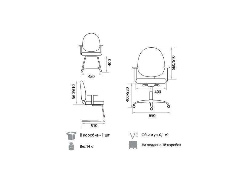 - Высота спинки: 560-610 мм