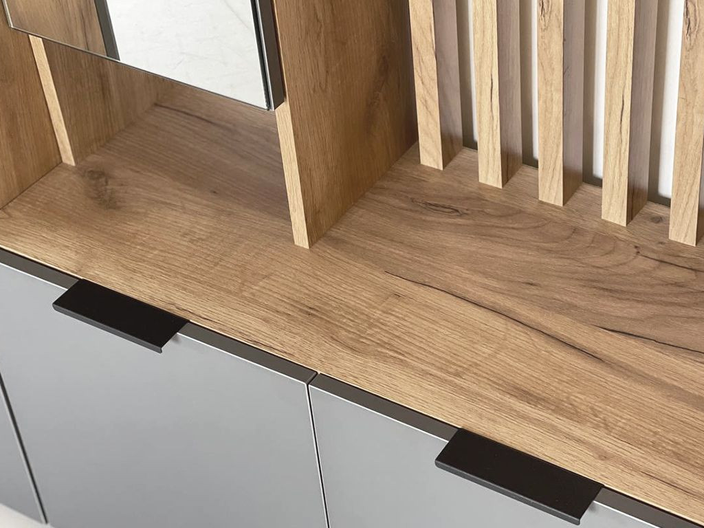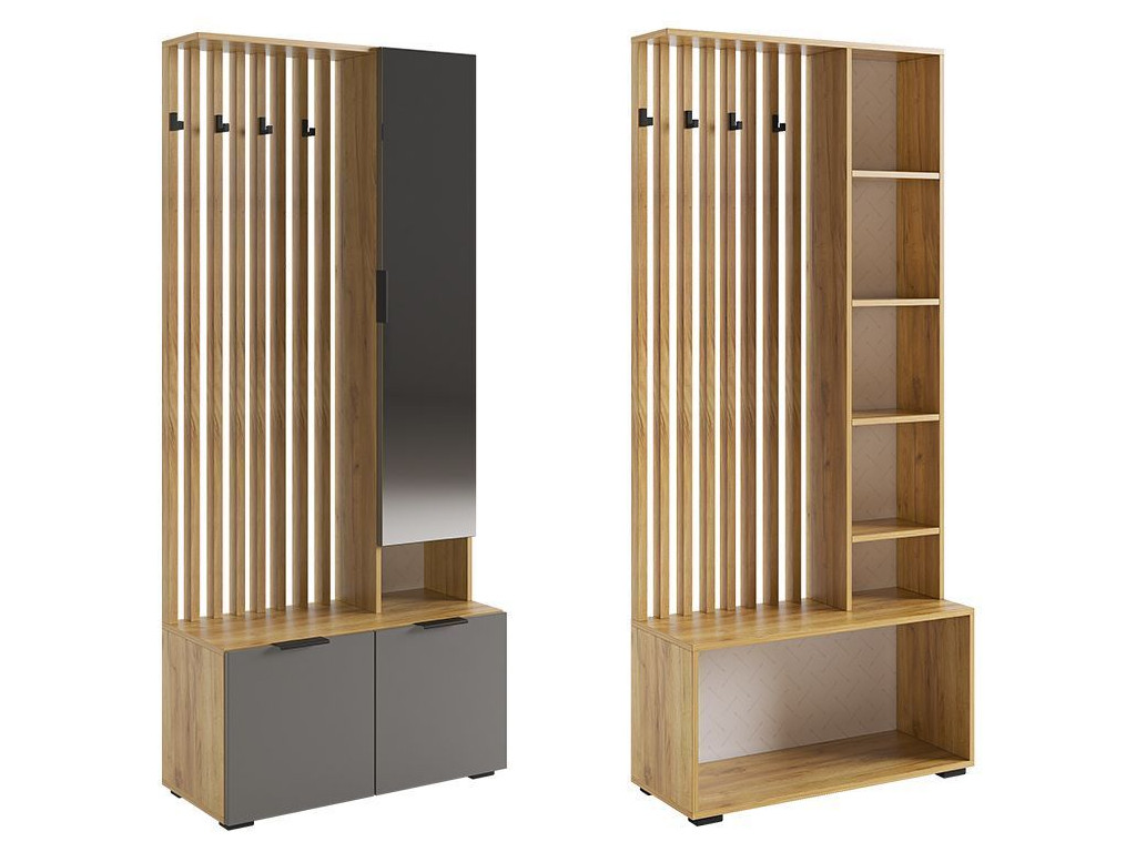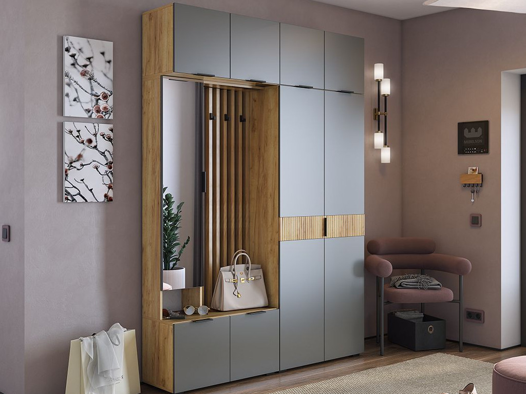 Стильные, трендовые рейки МДФ, акцентные крючки, зеркало, в котором можно себя увидеть в полный рост, полки для мелочей и головных уборов,