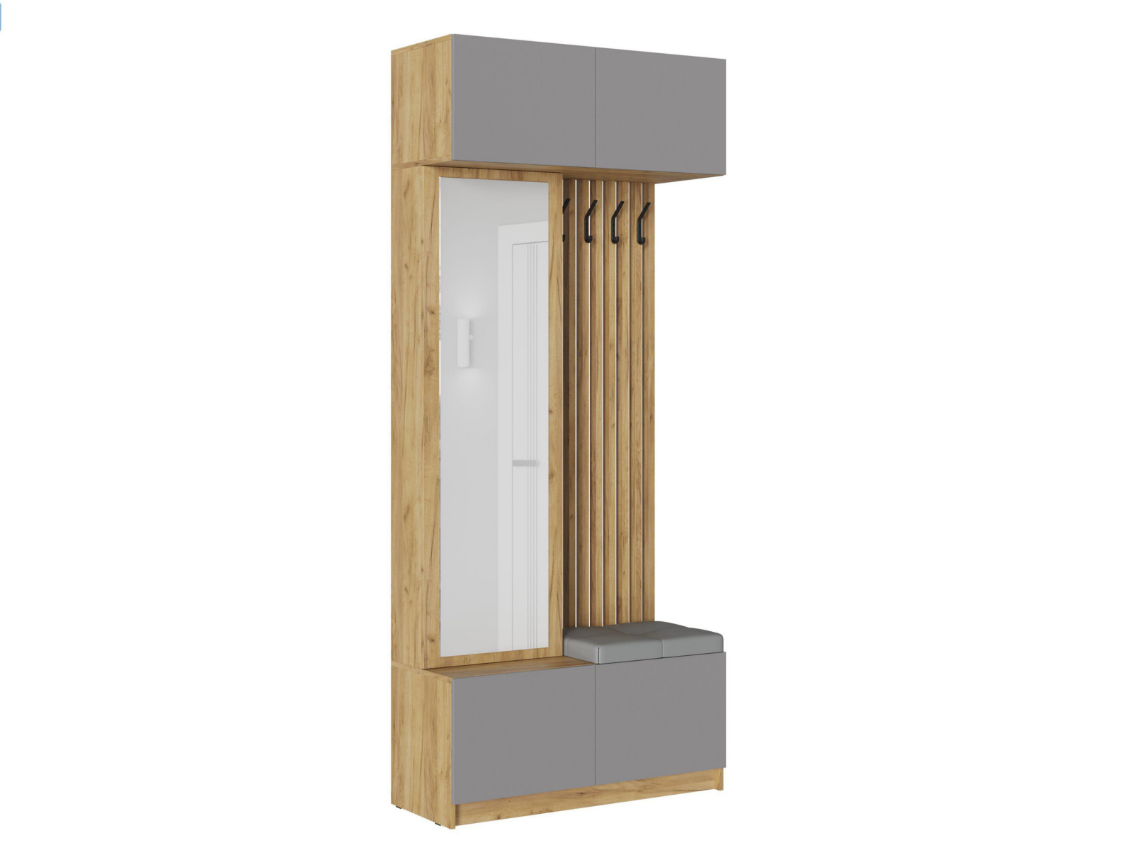 Цвет: корпус - дуб крафт золотой фасад лдсп - серый шифер кожзам.- ecotex 3022 / arena 007 (серая)