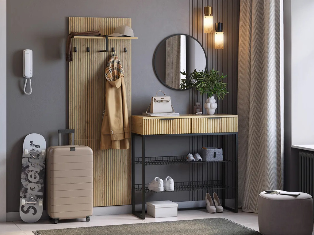 Прихожая Мебельсон К2 дуб крафт золотой/черный муар