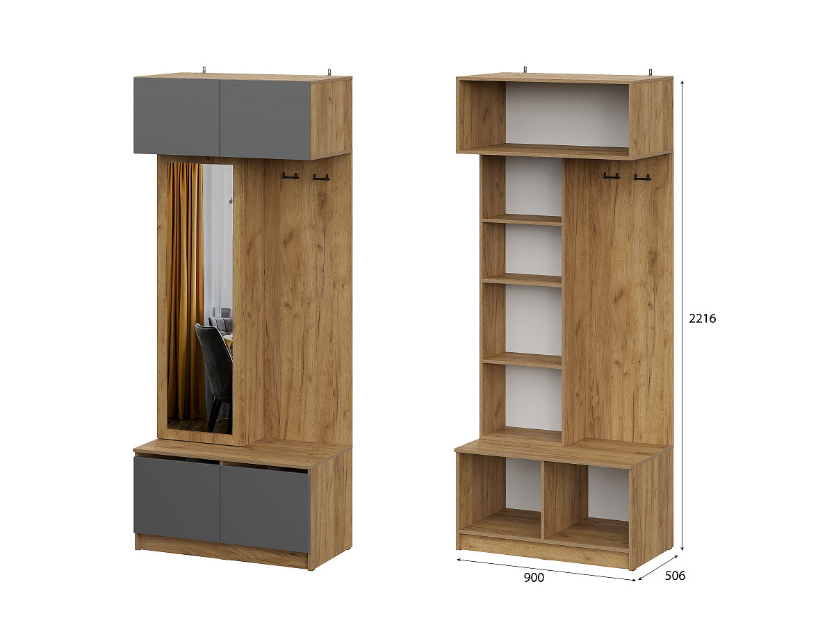Вешалка с зеркалом Авиньон Графит серый
