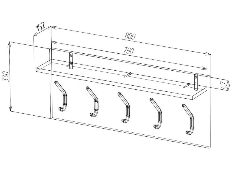 Габариты: 800(Ш) х 152(Г) х 330(В) мм.