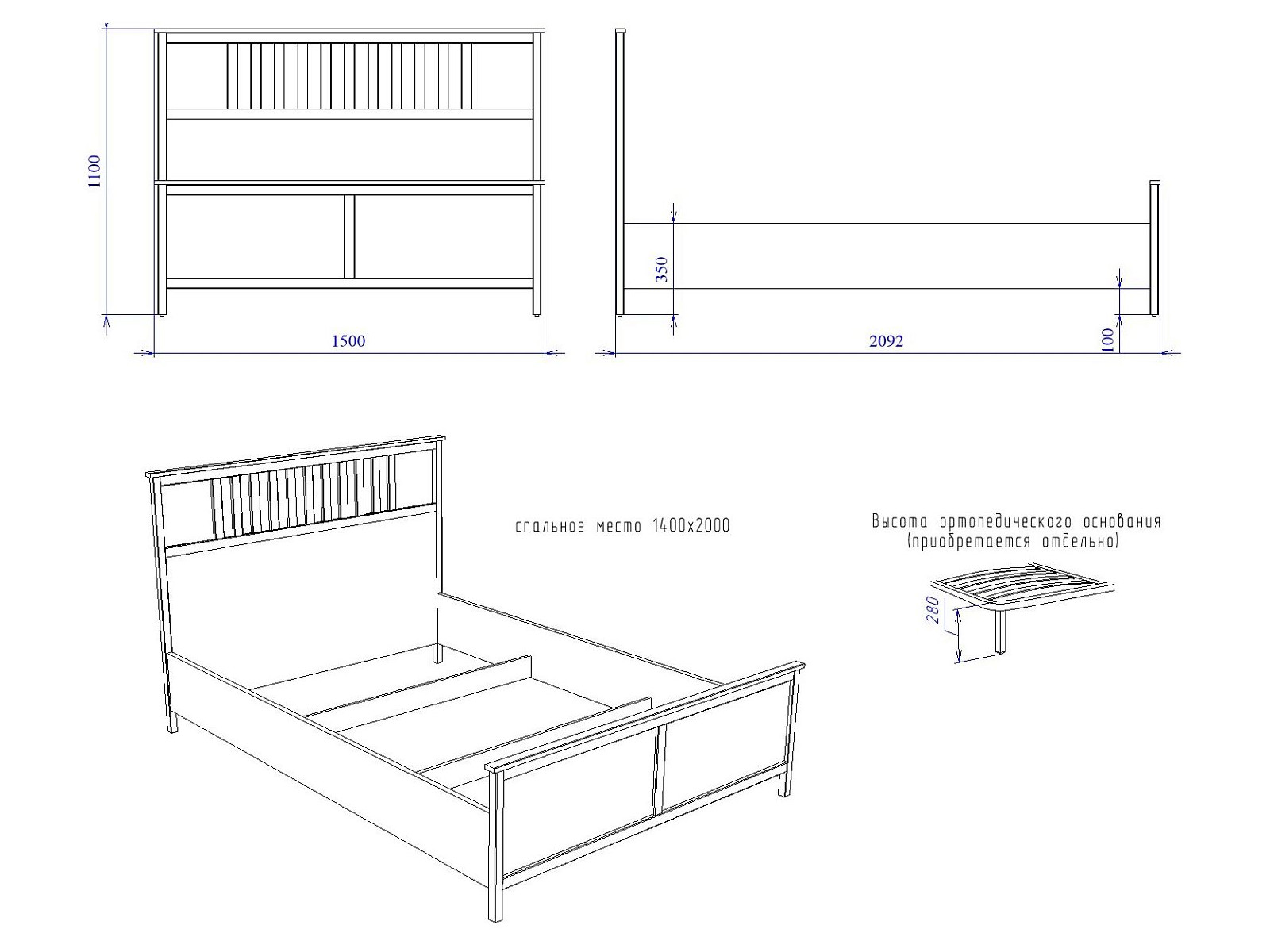 Спальное место: 1400*2000 мм