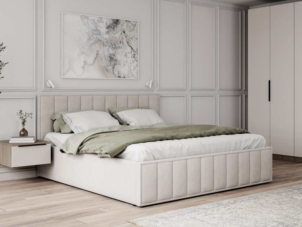 В комплектацию кровати входит ортопедическое основание с подъемным механизмом, благодаря которому всегда доступны дополнительные зоны хранения