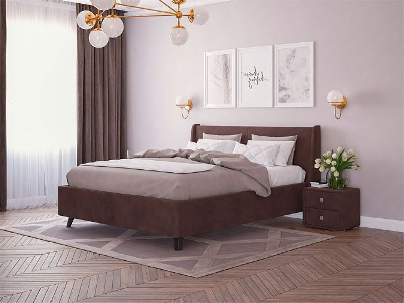 - Кровать Лорен с ПМ 1200х2000 мм микровелюр шоколад