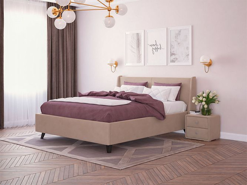 - Кровать Лорен с ПМ 1400х2000 мм микровелюр бежевый