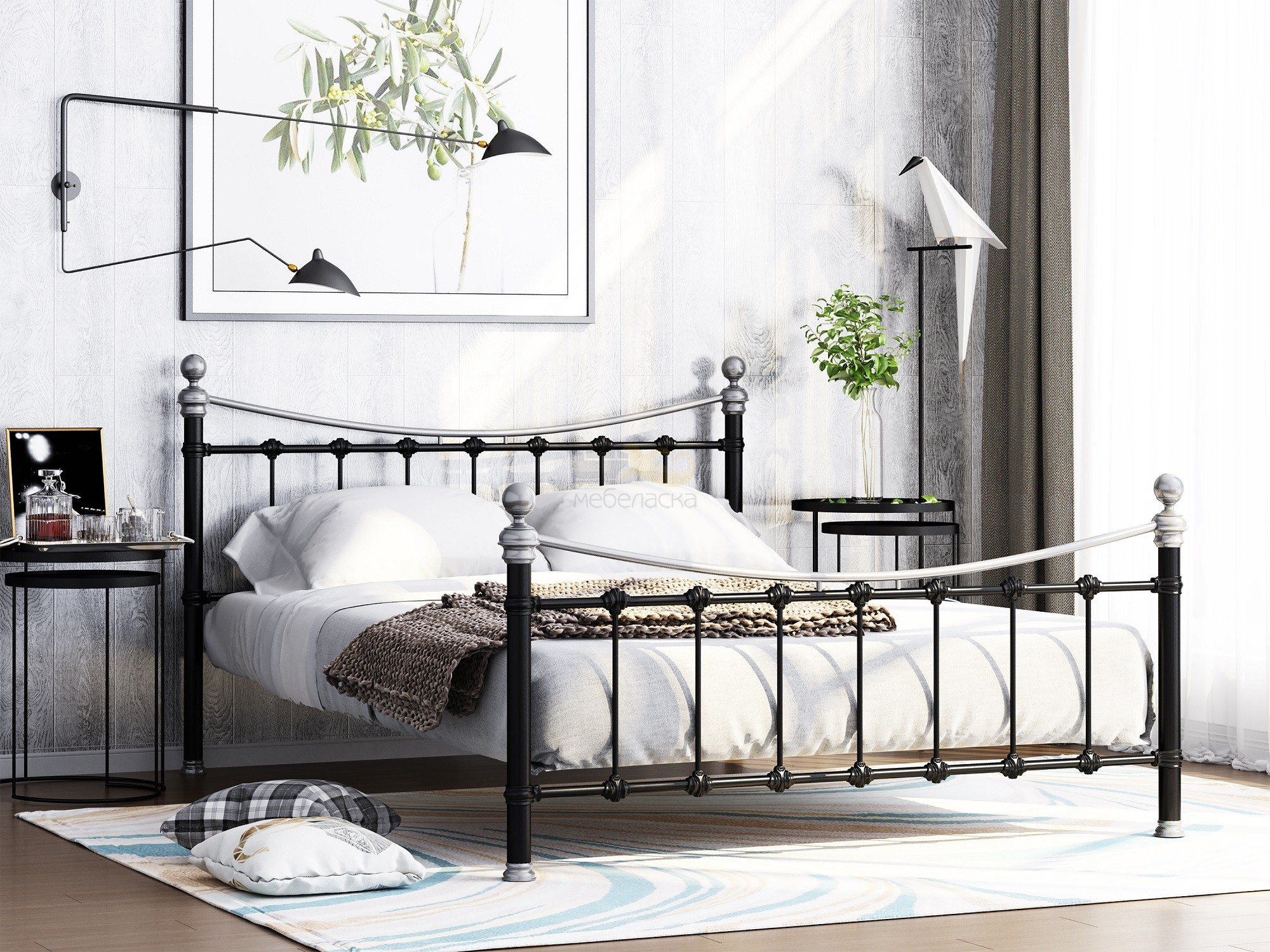 - Кровать металлическая Эльда Черный/Серебро