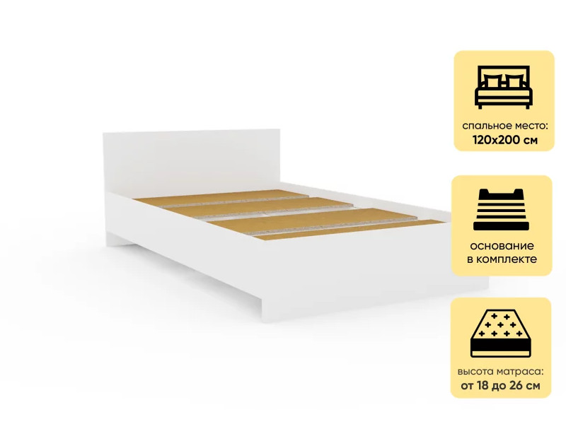 Кровать Монблан 120х200 см Белый Шагрень