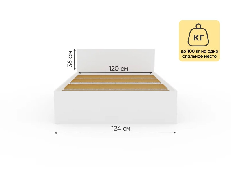 Прочное и крепкое основание кровати выдерживает до 100 кг на одно спальное место.