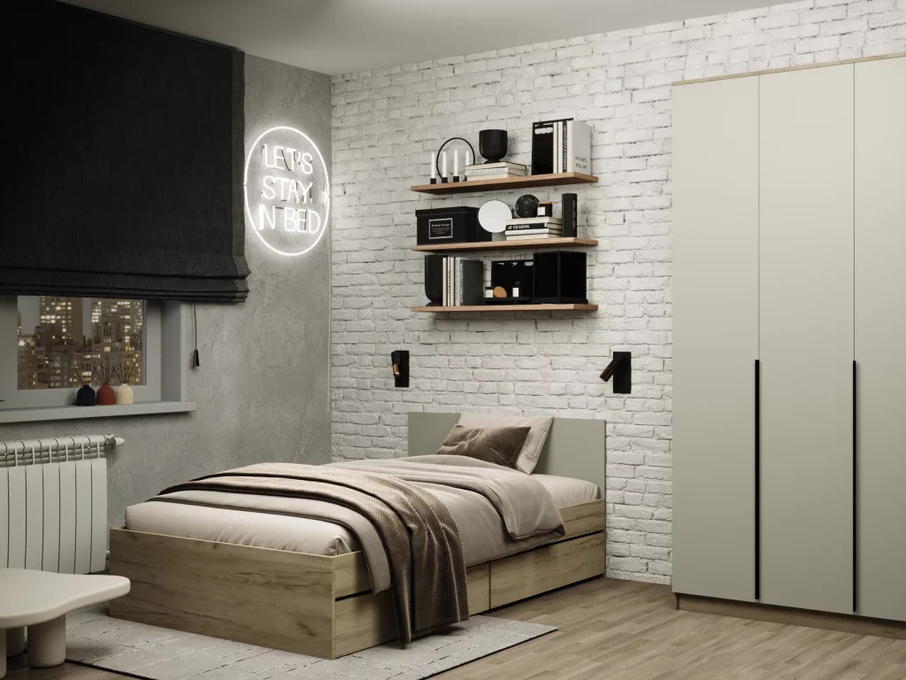 - Кровать Монблан с ящиками 120х200 см Кашемир