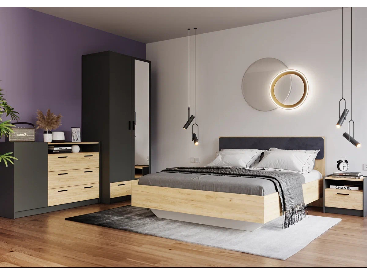 Кровать Оттавия НМ 011.56 Велюр Ультра графит, Дуб Крафт Золотой