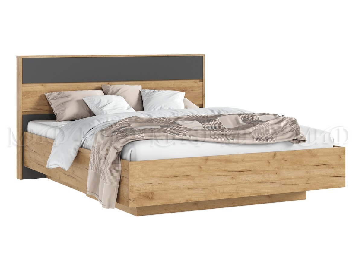 - Кровать парящая 1600 Роджина (ортопед металл) Графит/Дуб Крафт