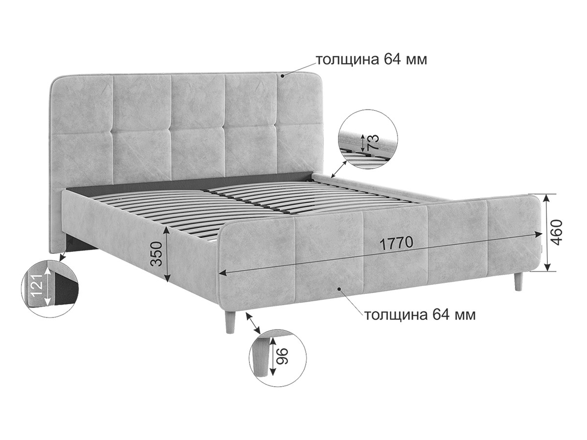 - Кровать с основанием Грета грей алькантара