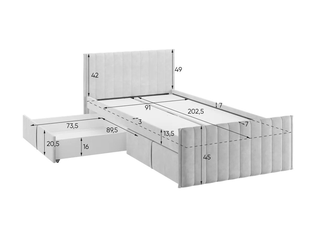 Дополнительно можно приобрести наматрасник в цвет обивки и мягкий ограничитель.