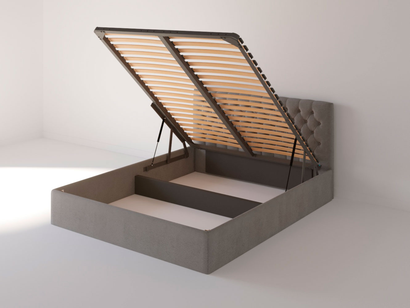 Подъемный механизм: Удобный подъемный механизм предоставляет доступ к пространству для хранения под кроватью, что особенно полезно для компактных жилых пространств. Он прост в использовании и позволяет максимально эффективно организовать хранение вещей.