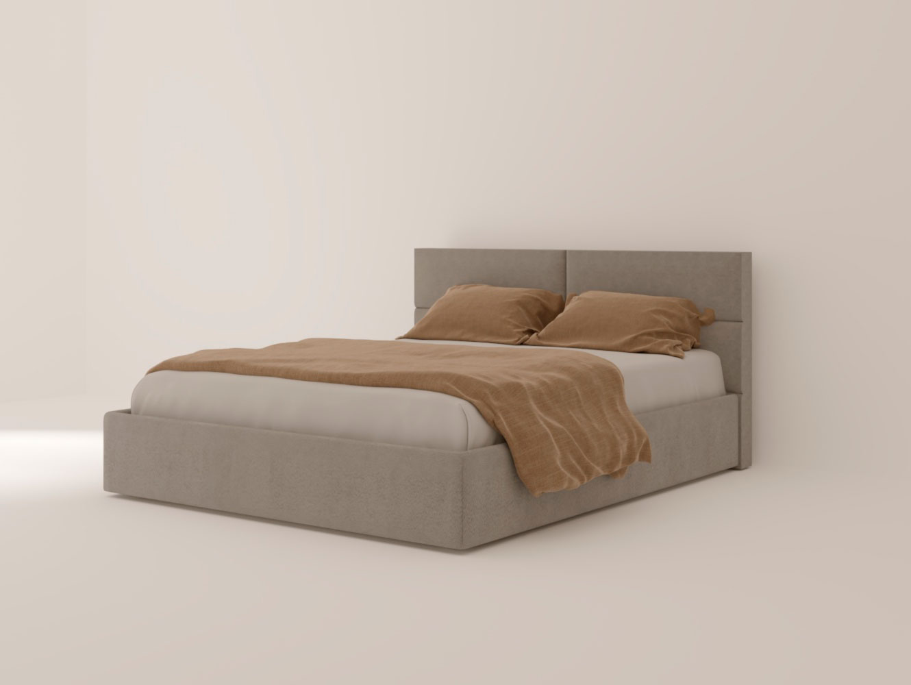 Изголовье: Изголовье состоит из нескольких панелей, красиво оформленных с эффектом стежки. Это не только эстетически приятно, но и обеспечивает комфортную поддержку для спины, что делает кровать удобной для чтения или отдыха.