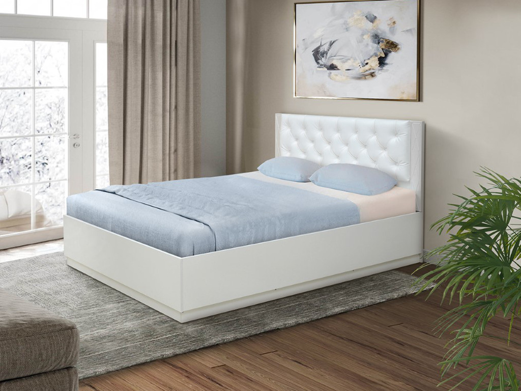 - Кровать Венеция 12.1 1400 с подъемным механизмом кожзам белый