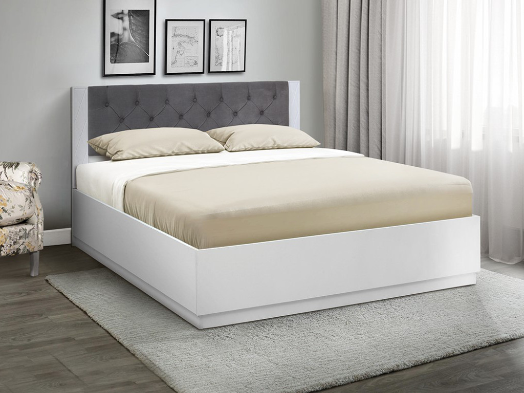 Цвет: ЛДСП Белый, мдф белый матовый, ткань велюр 032, (каретная стяжка)