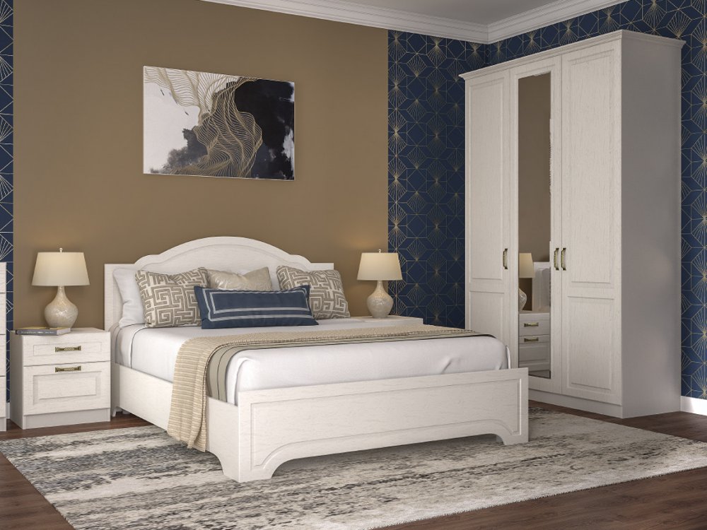 Стоимость зависит от комплектации. Цена за модули на фото: Кровать 11.08, Тумба 08.146, Шкаф комбинированный 08.45