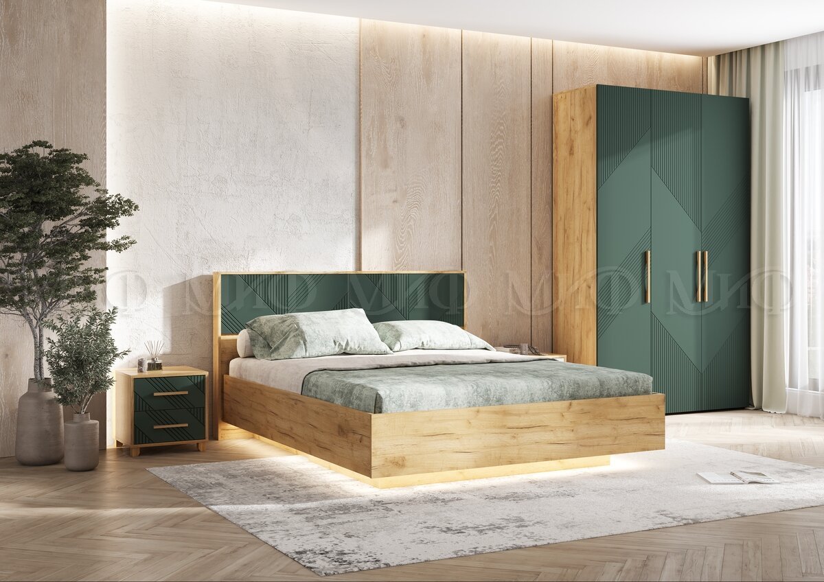 - Спальня Ирис Браш Мени Грин/Дуб Крафт