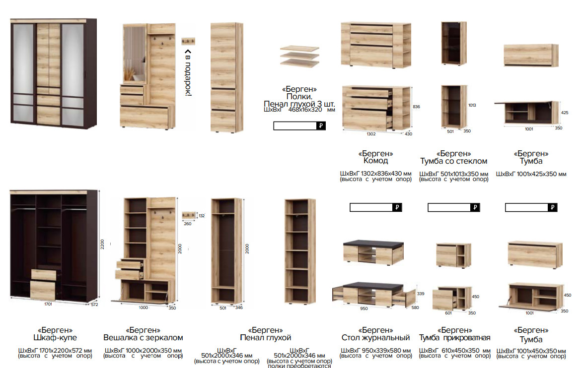 - Вешалка с зеркалом ( 61,95 кг; 0,113 м3) ( 1001х2000х350 мм)