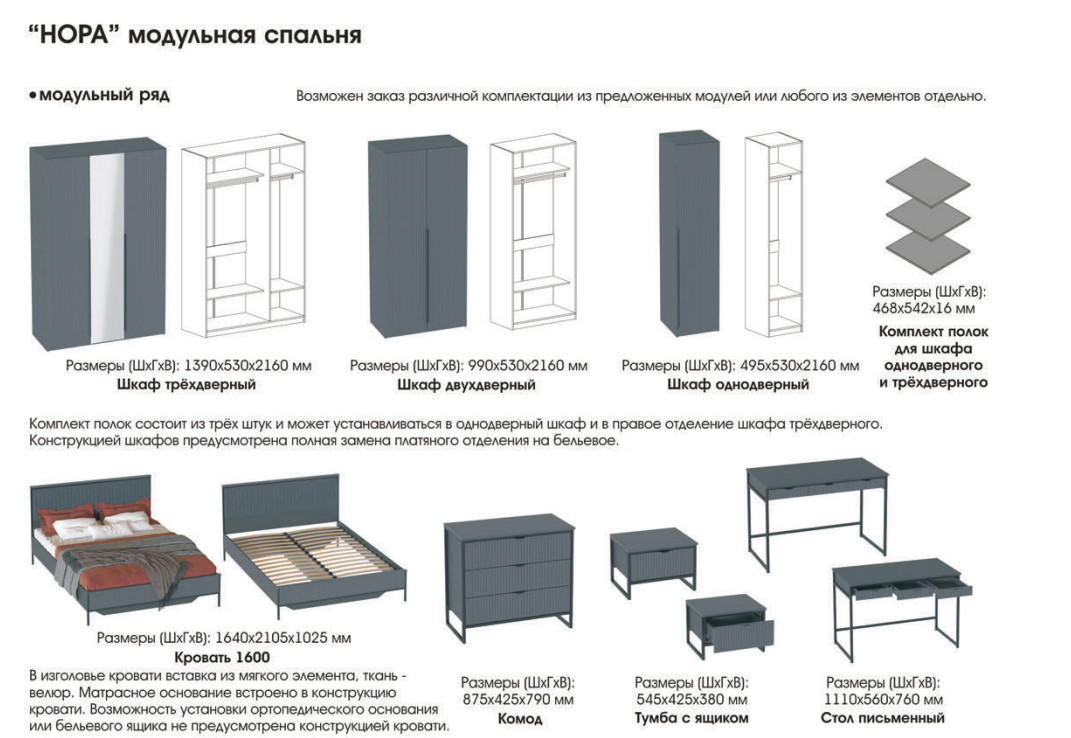 - Спальня Нора Металл бруклин/Графит