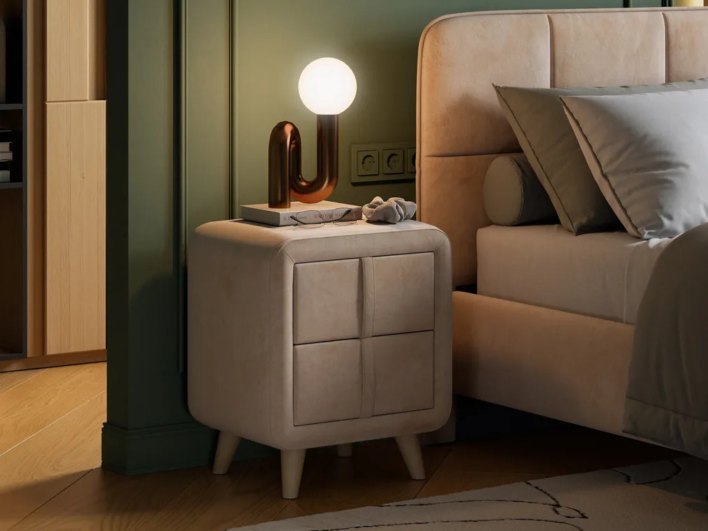 - Тумба прикроватная Софи 3 песок алькантара