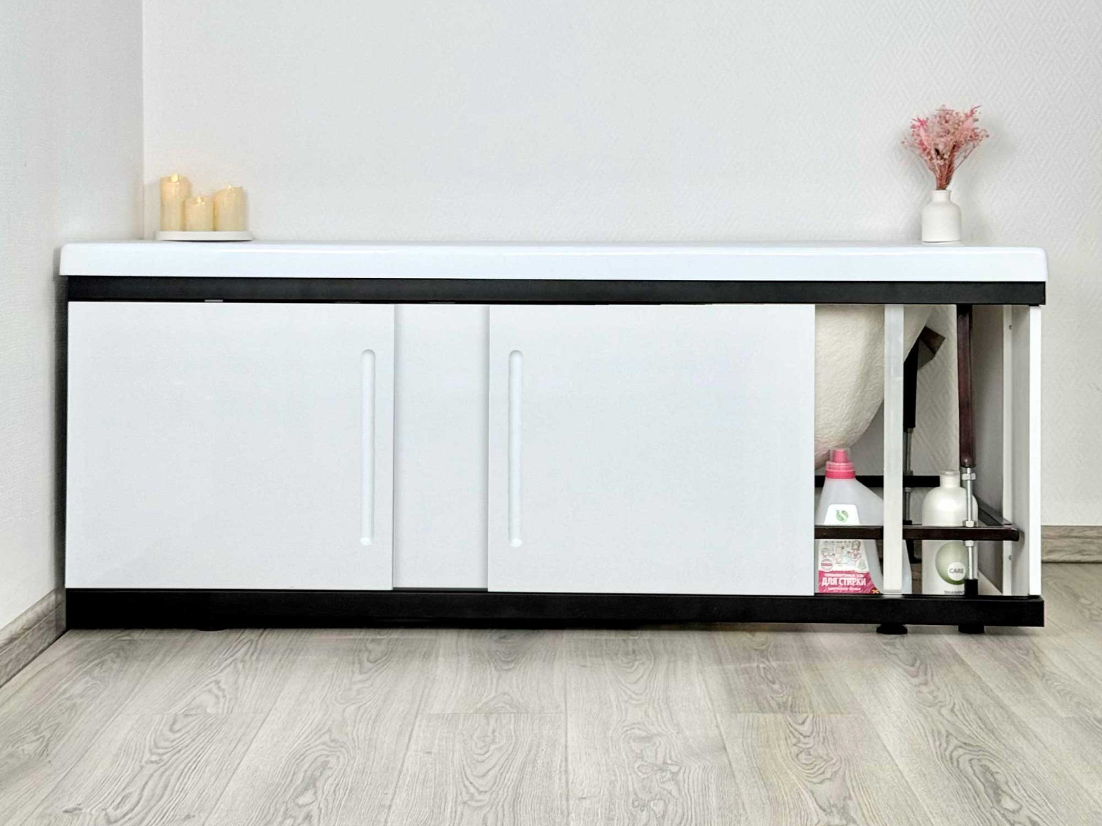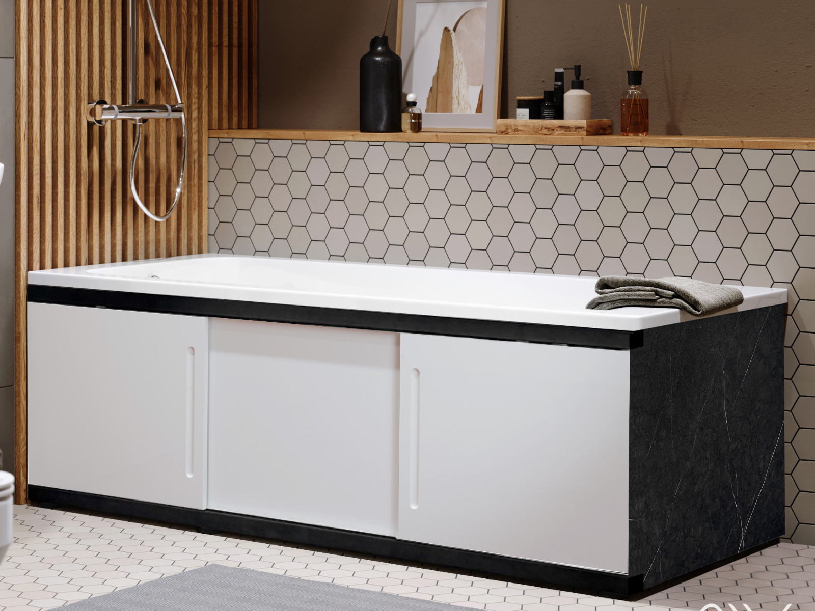 - Экран под ванну МДФ Alt Black 1800 мм белый