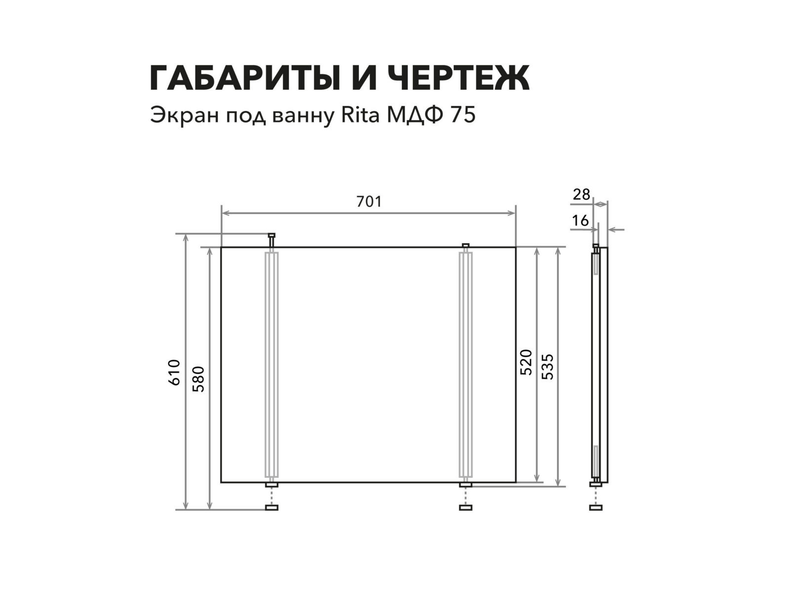 - Экран под ванну МДФ Rita 0,75 торцевой дуб