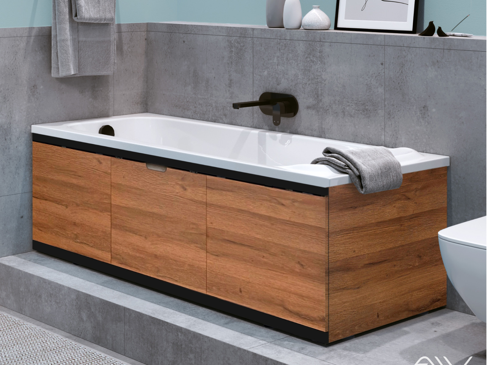 - Экран под ванну МДФ Rita Black 1600мм дуб