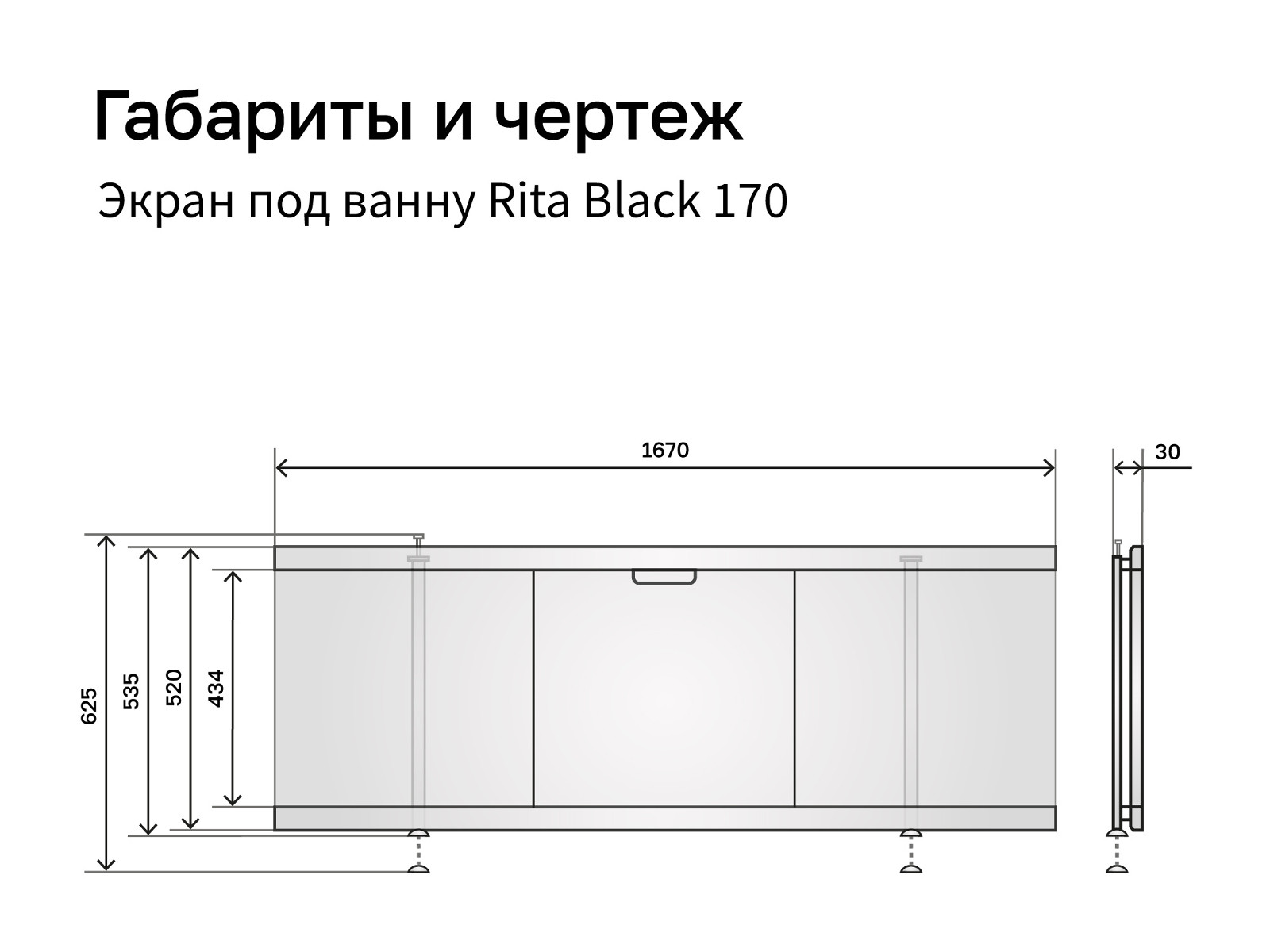 - Экран под ванну МДФ Rita Black 1700 мм белый