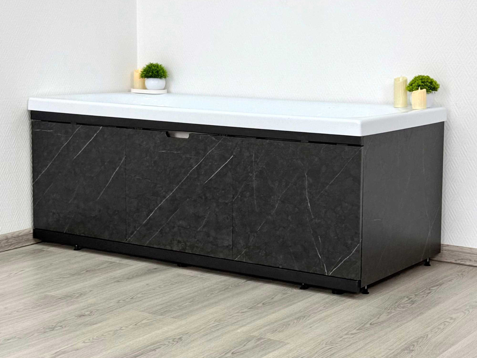 - Экран под ванну МДФ Rita Black 1700 мм черный мрамор
