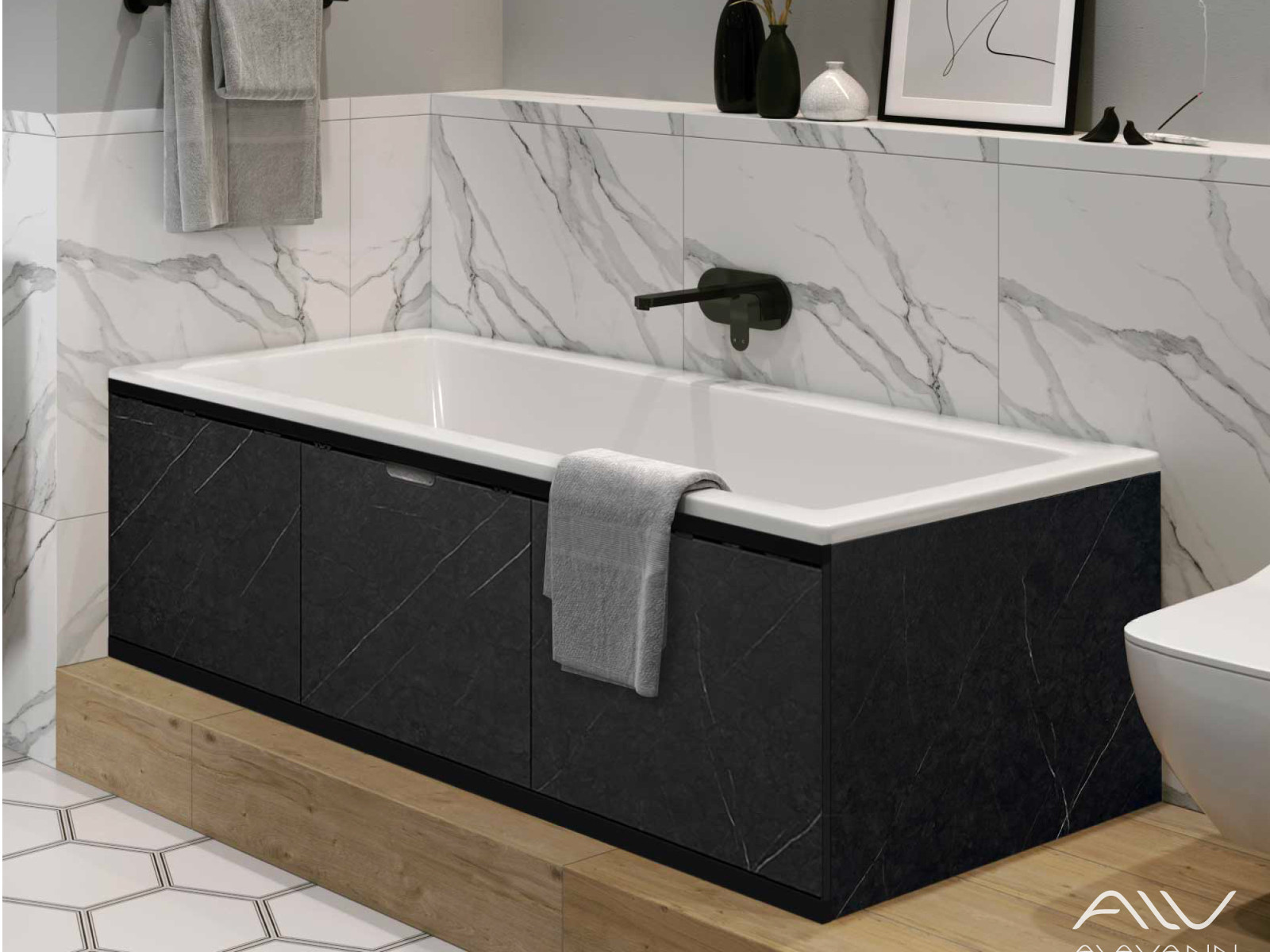 - Экран под ванну МДФ Rita Black 1800 мм черный мрамор