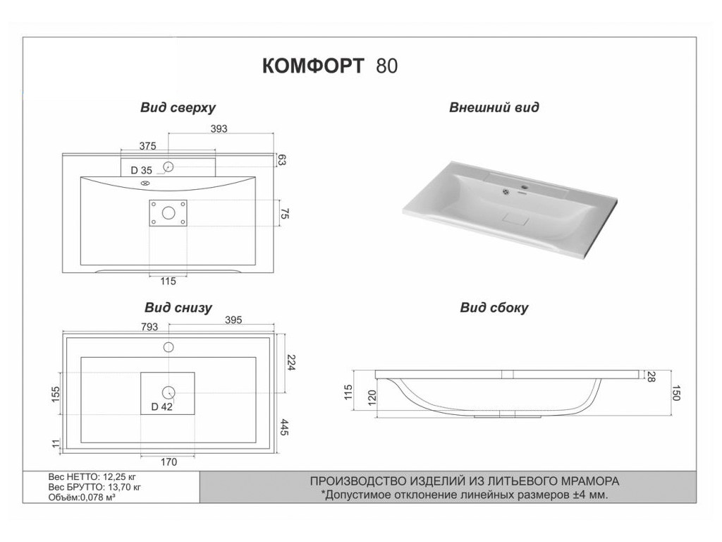 - Тумба "Сохо" 80 напольная 2 ящика белый + ум Слим 80 или Комфорт 80