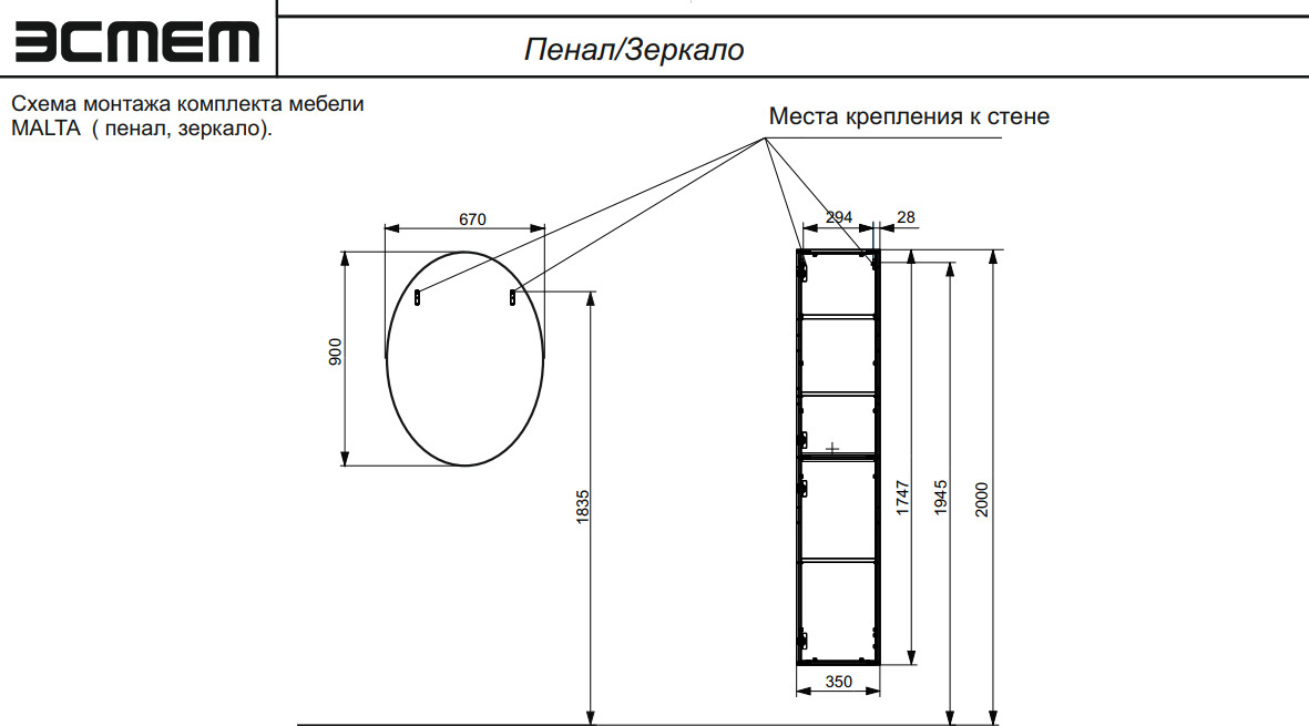 - Пенал подвесной Malta правосторонний
