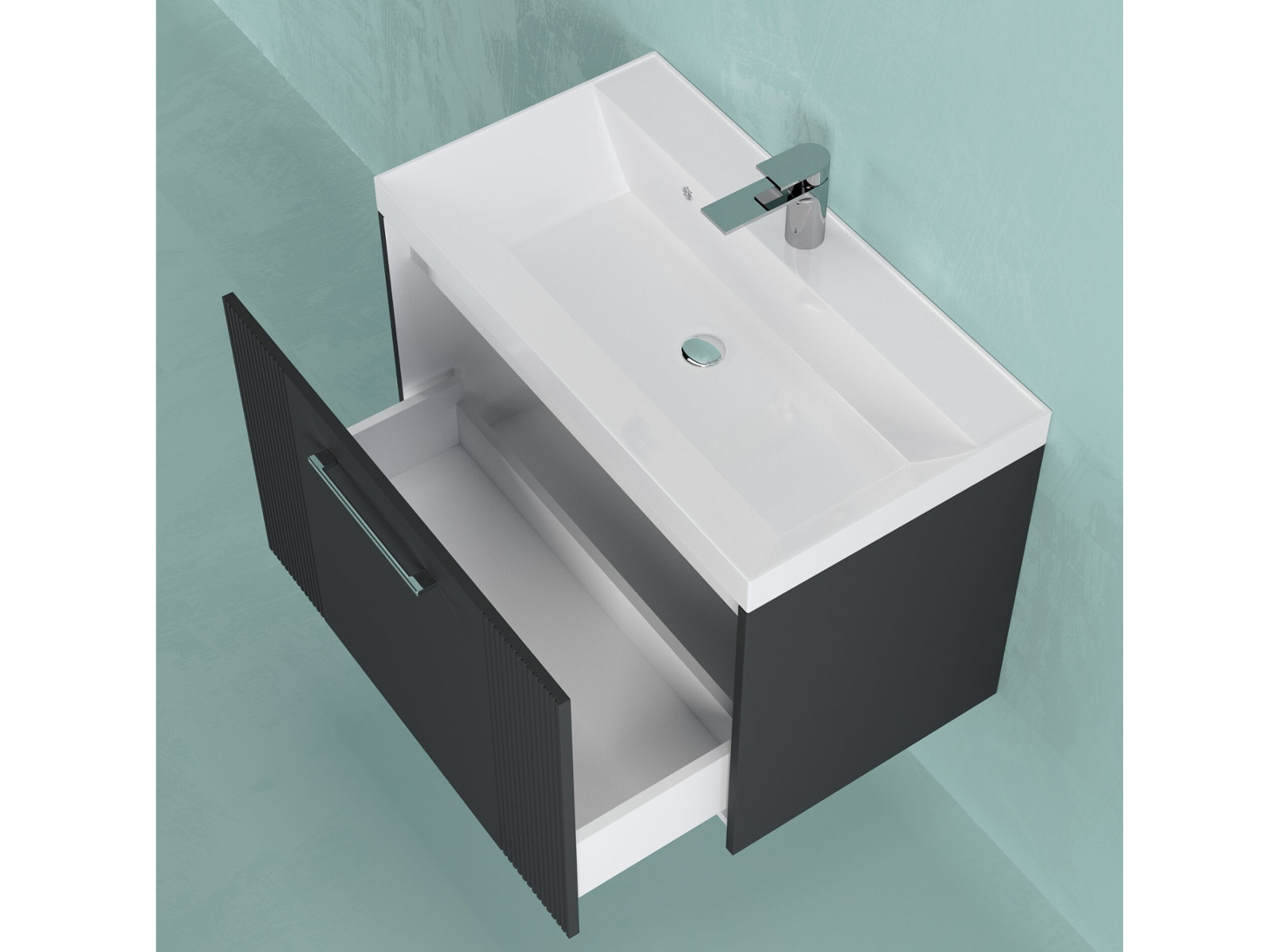 - Тумба Альба 80 подвесная 1 ящик раковина Комфорт 80 антрацит