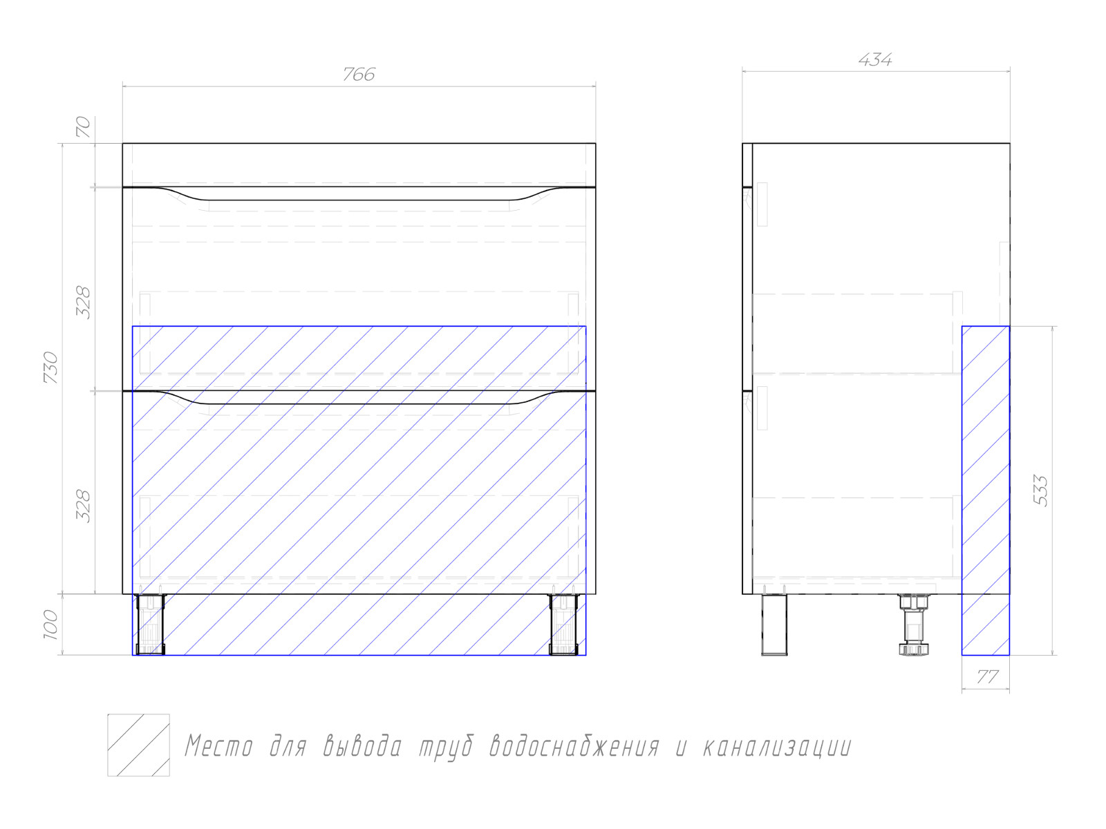 Размер тумбы с раковиной (ШxГxВ): 800x450x850 мм