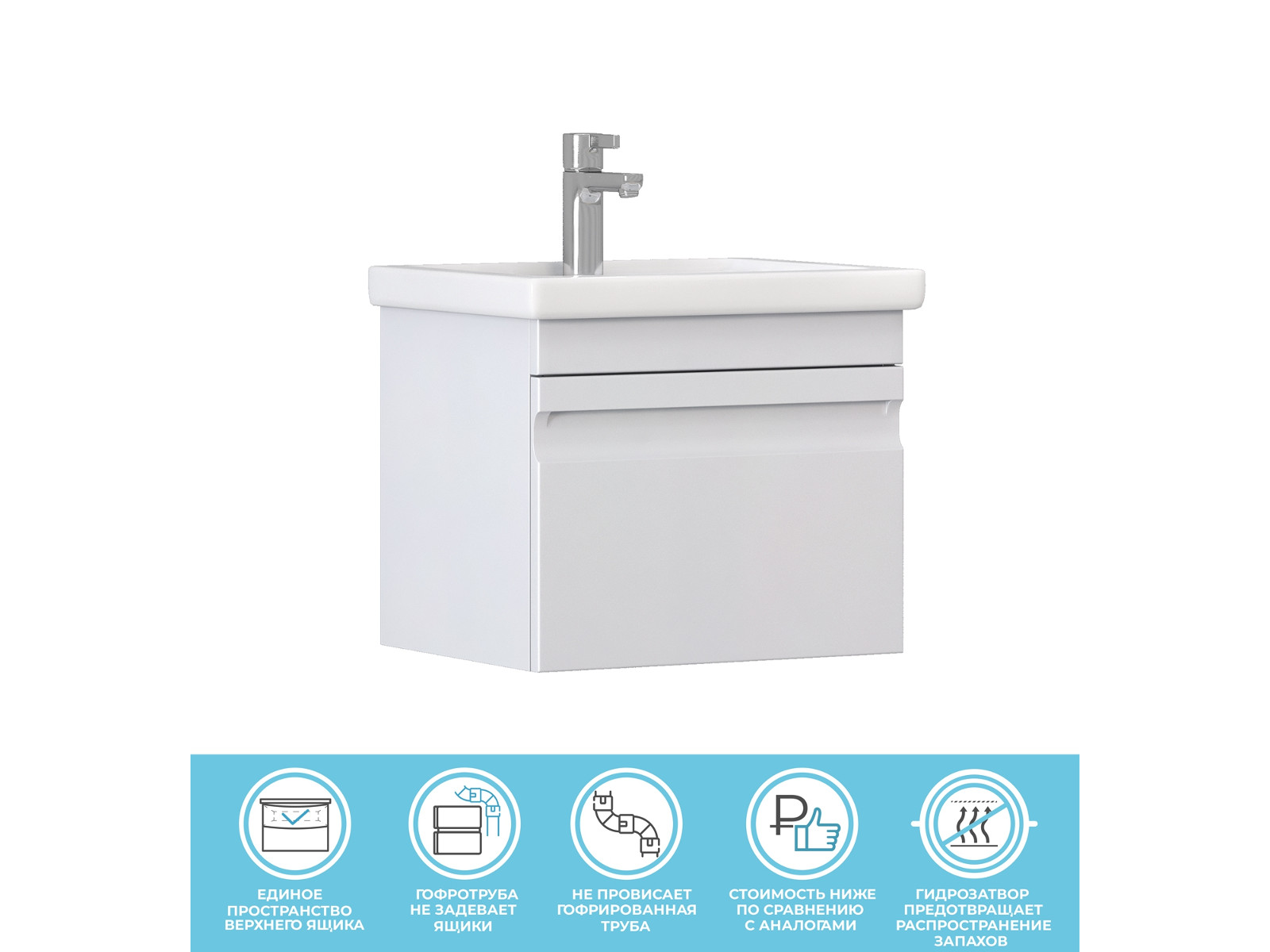 Тумба с раковиной Uperwood Tanos матовая белая 50 см
