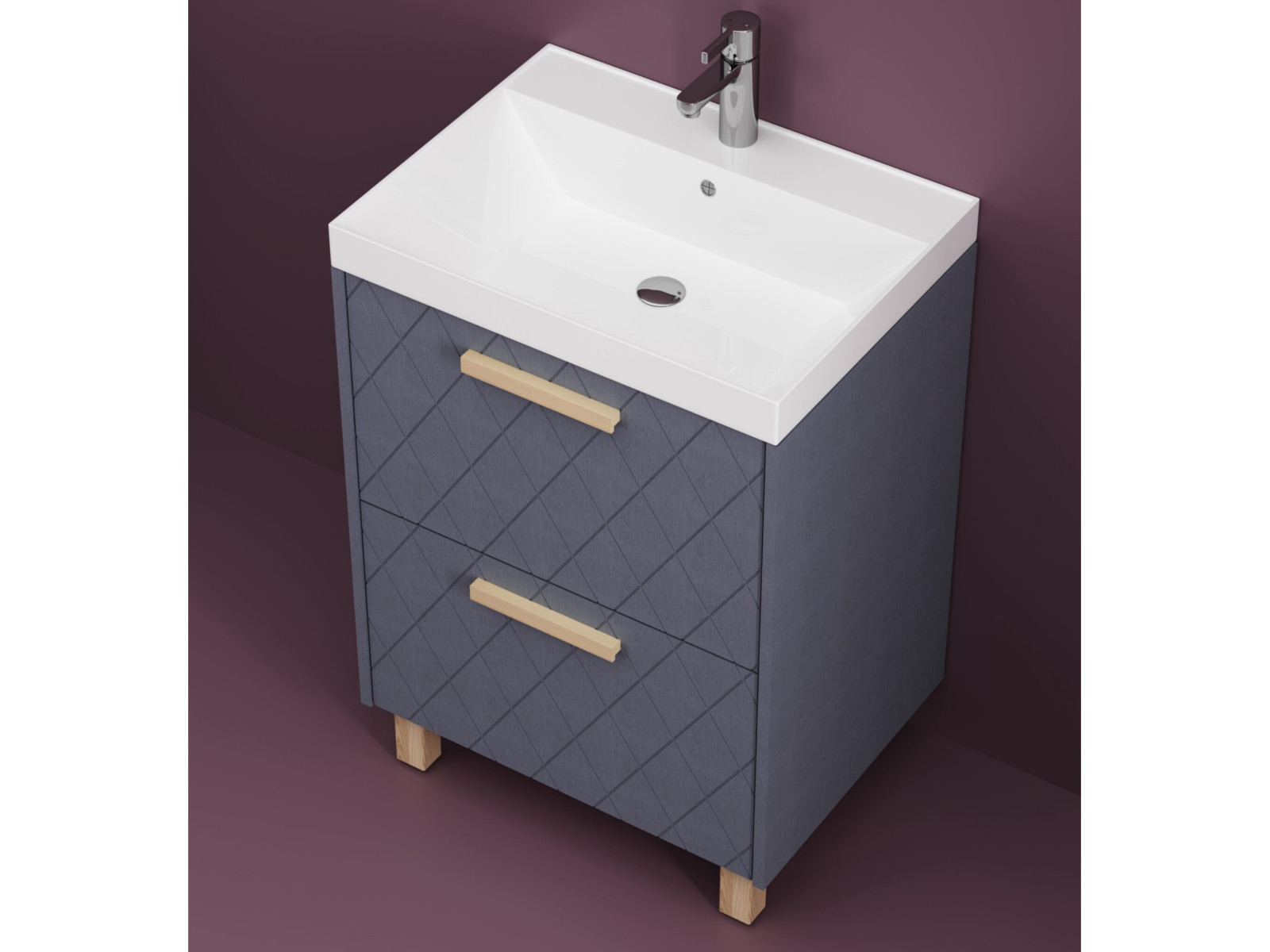 - Тумба Кристалл 80 напольная 2 ящика ручка дуб, раковина Слим 80 шато азур