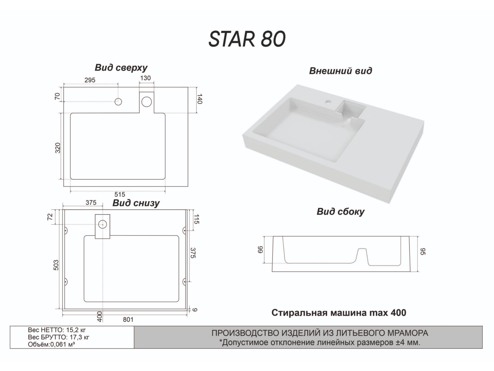 - Раковина Coral 80 MySpace (Белый)+сифон