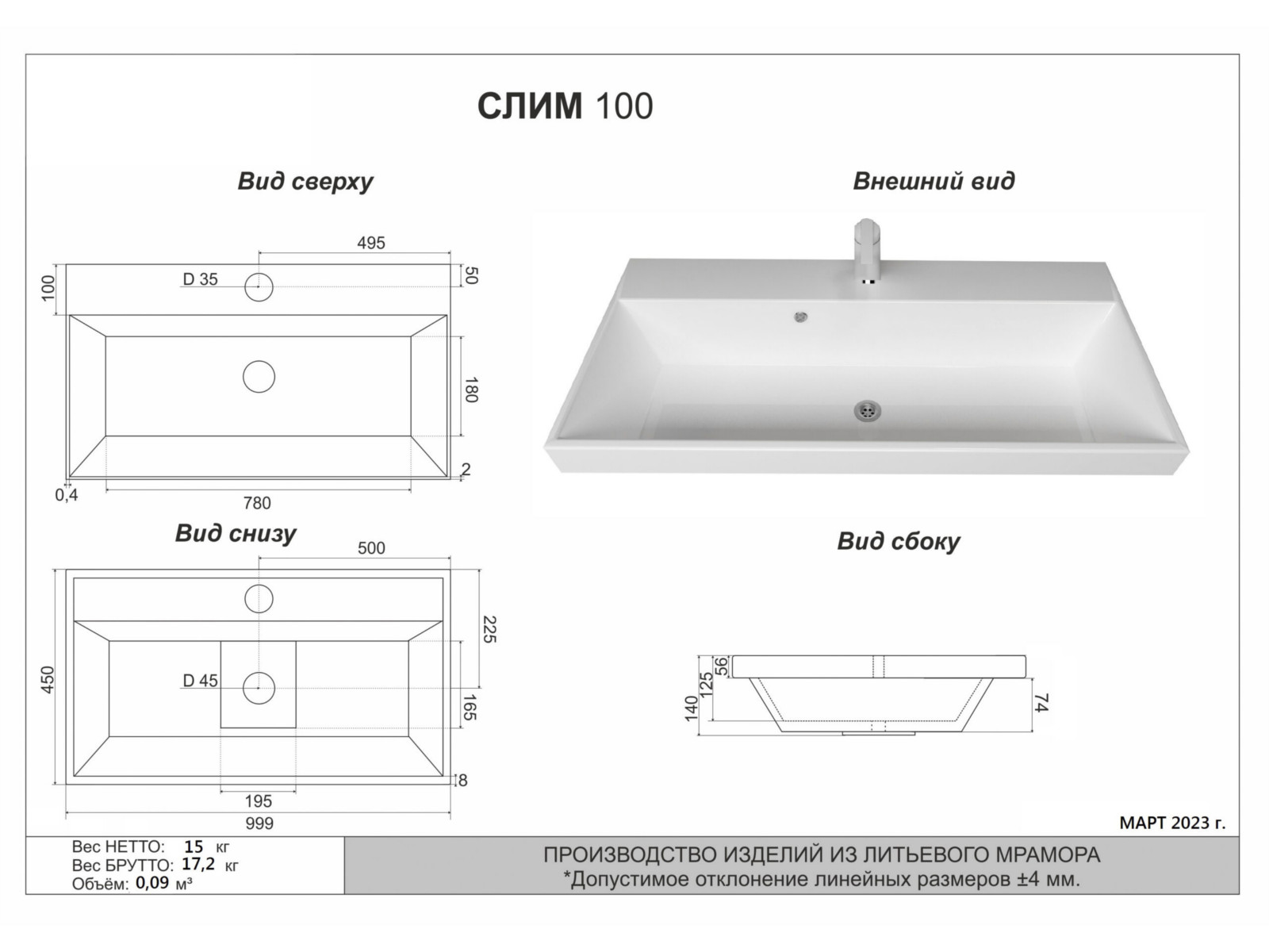 - Тумба Куба Риф 100 напольная 2 ящика раковина Слим 100