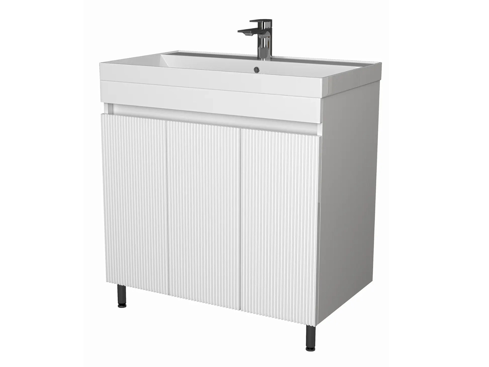 - Тумба Куба Риф 80 напольная 3 двери белый раковина Слим 80