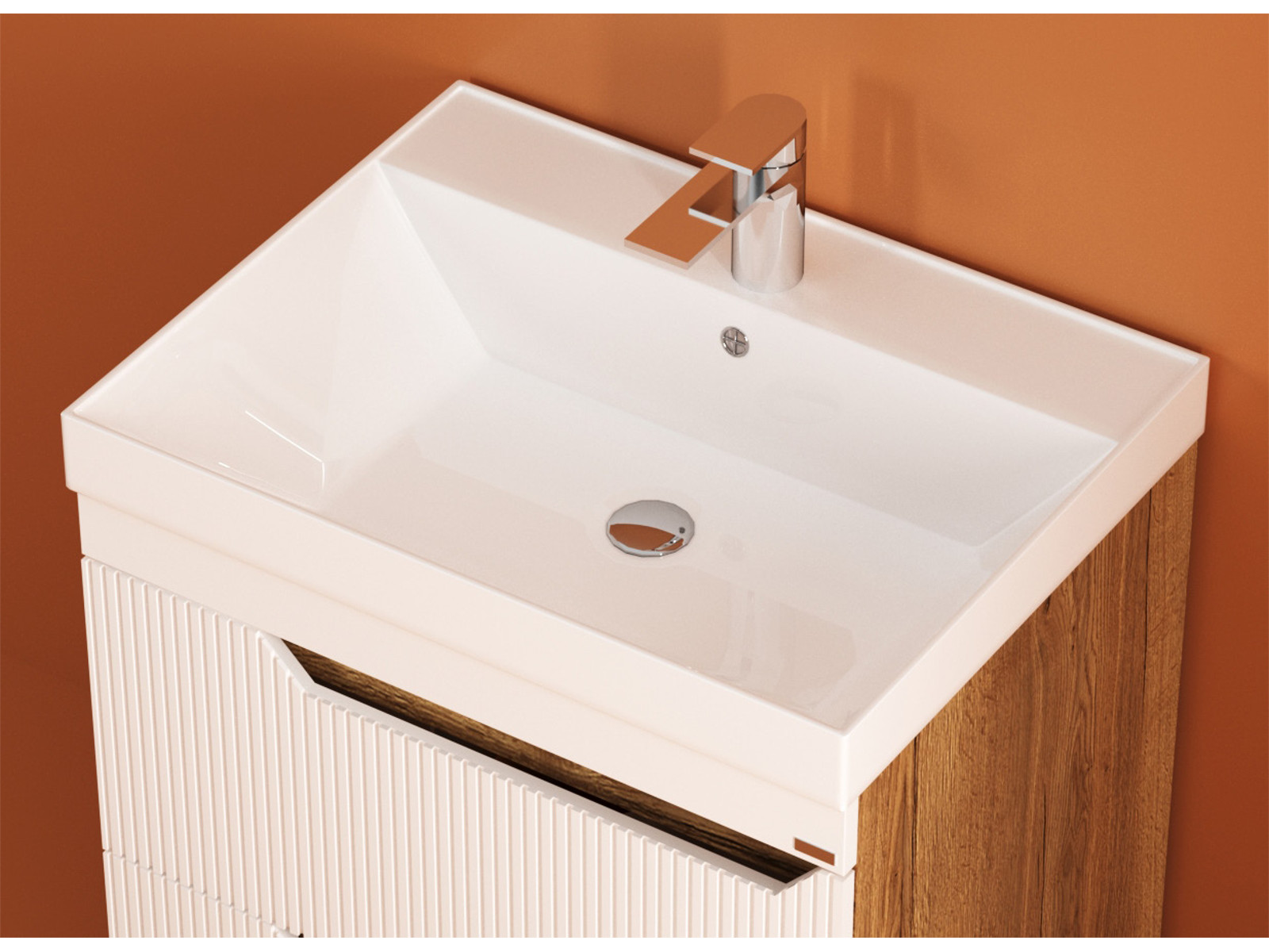 - Тумба Леон Риф 80 напольная 2 ящика раковина Слим 80 солярис/белый риф