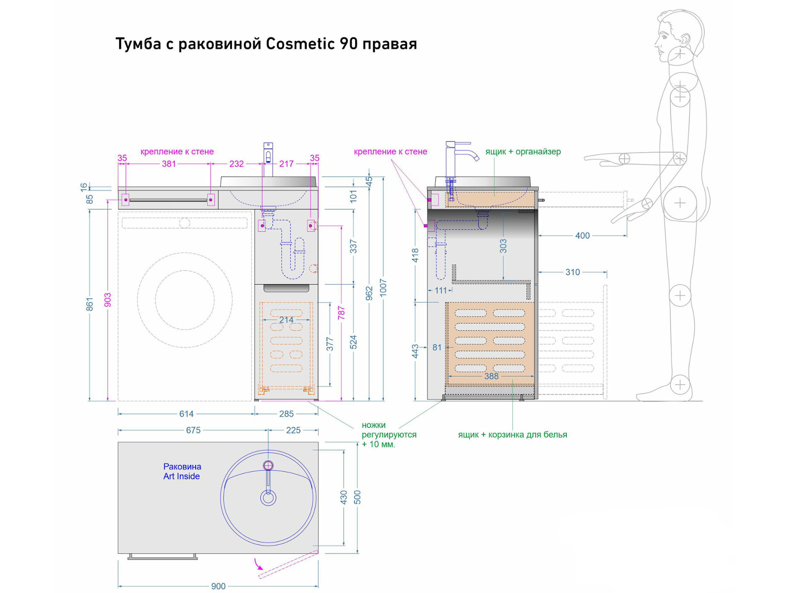 - Тумба с раковиной Cosmetic 90 белая