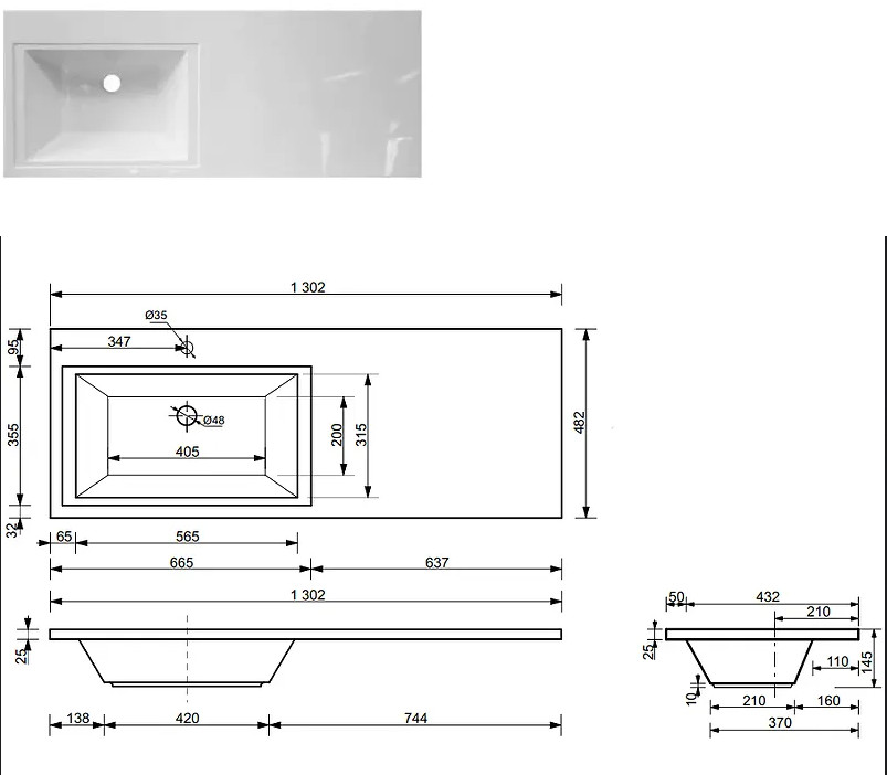 - Тумба с раковиной Dallas Luxe 1300 навесная 2 ящика левая