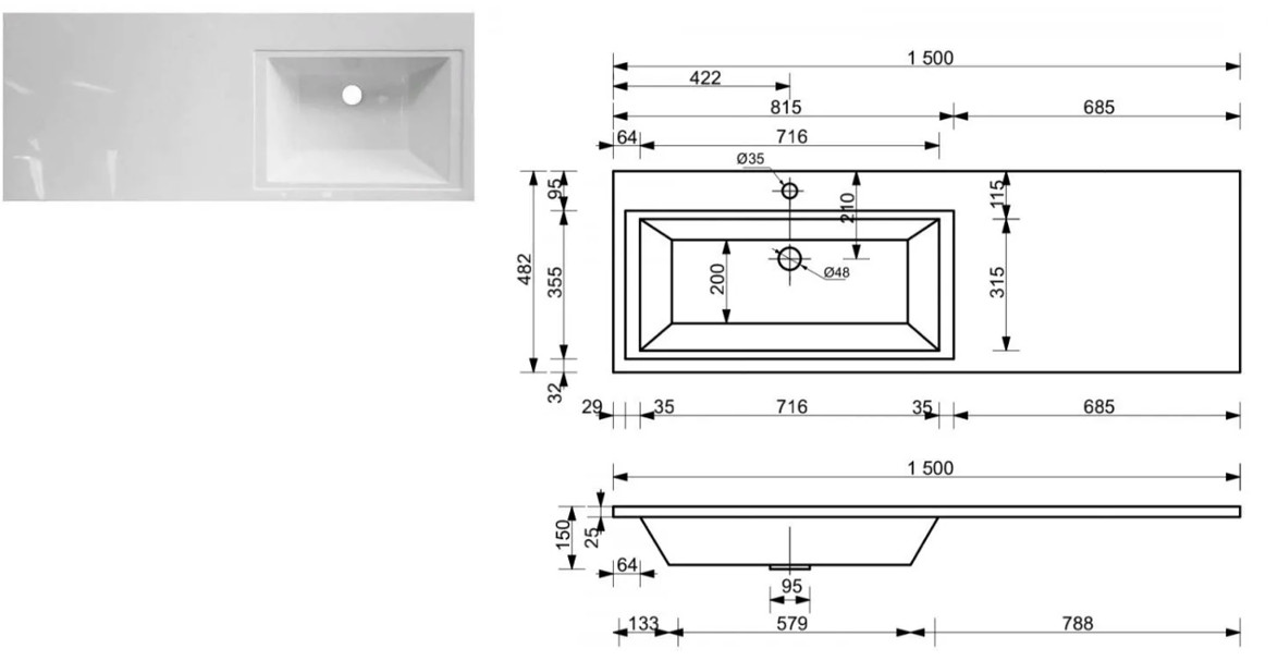 Размер ШхГхВ: 848/1500х476х885 мм