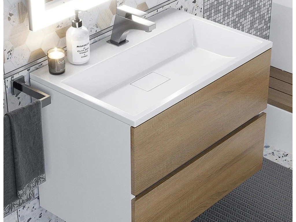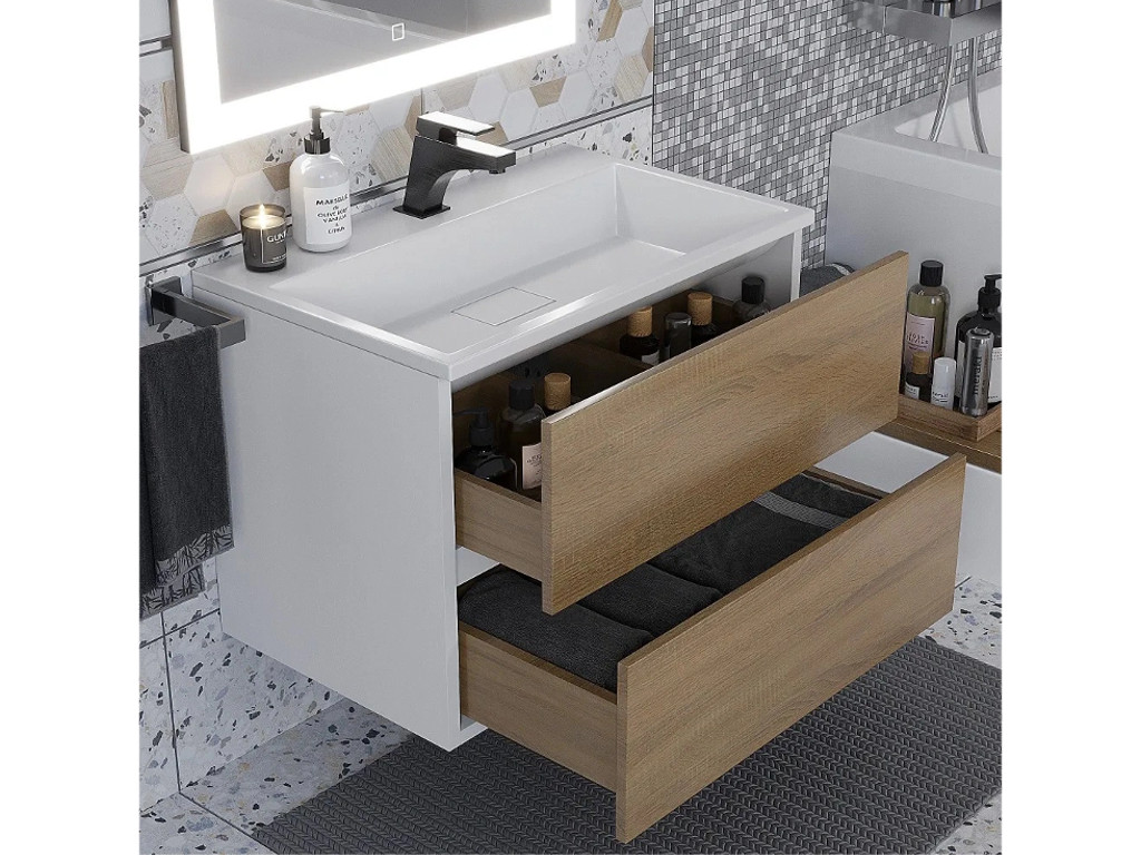 - Тумба с раковиной Uperwood Barsa 70 см раковина белая-тумба белая/дуб сонома