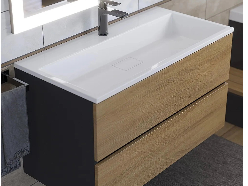 Тумба с раковиной Uperwood Barsa 90 см раковина белая-тумба черная/дуб сонома